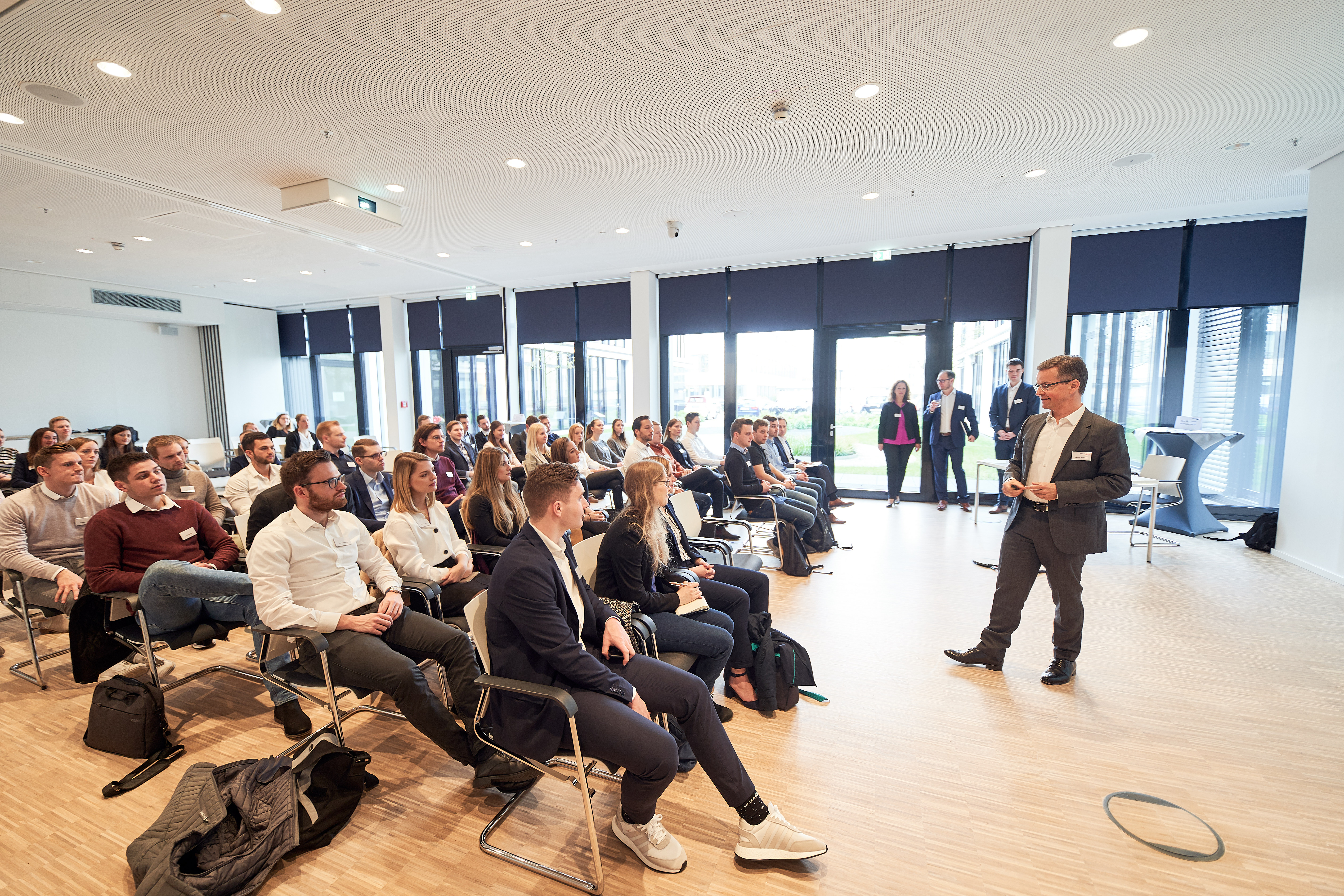 Im zweiten Teil der Veranstaltung versammelten sich die Studierenden im sogenannten „World Café“, um sich mit Führungskräften von Brenntag zu den Schwerpunktthemen Key Account, Investor Relations, Material Science, Business Development, Human Resources und IT auszutauschen. Eine rundum gelungene Veranstaltung für Studierende, Lehrende und Praxispartner.